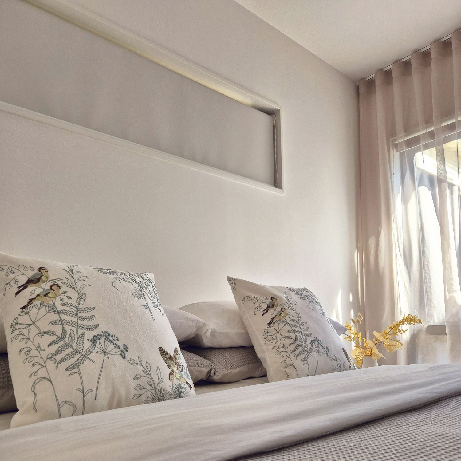 The Elysian Cushion Cover showcases a beautifully embroidered design of birds nestled among artistic greenery. Every stitch captures the essence of nature’s beauty, crafted with incredible detail and precision. From the delicate feathers to the intricate leaves, the design adds depth and artistry to your living space, bringing a touch of nature indoors.
